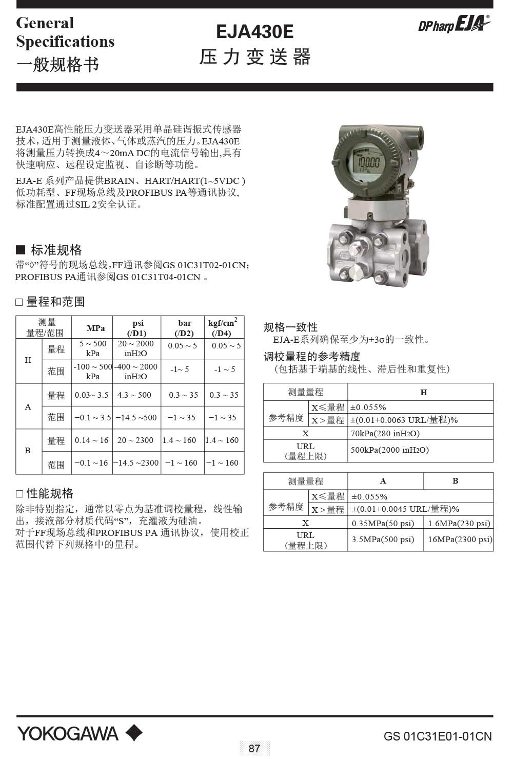 EJA430E壓力變送器