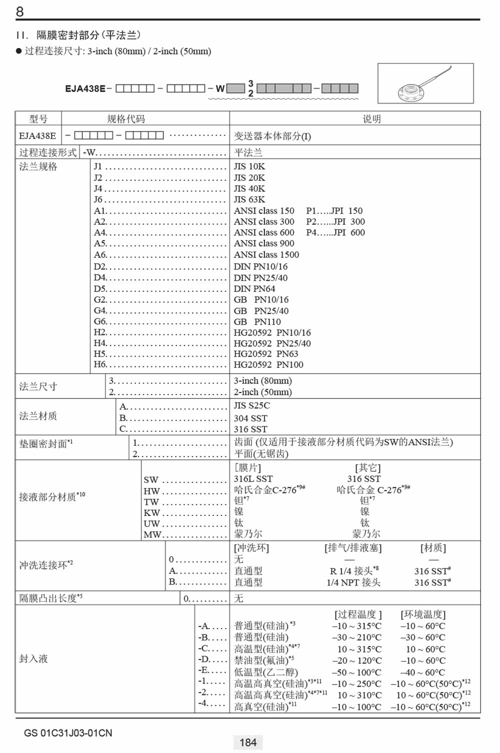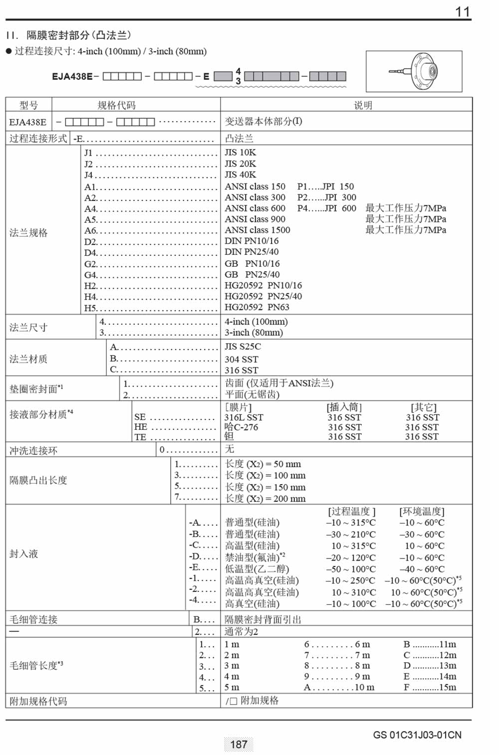 名稱:EJA438E隔膜密封式壓力變送器